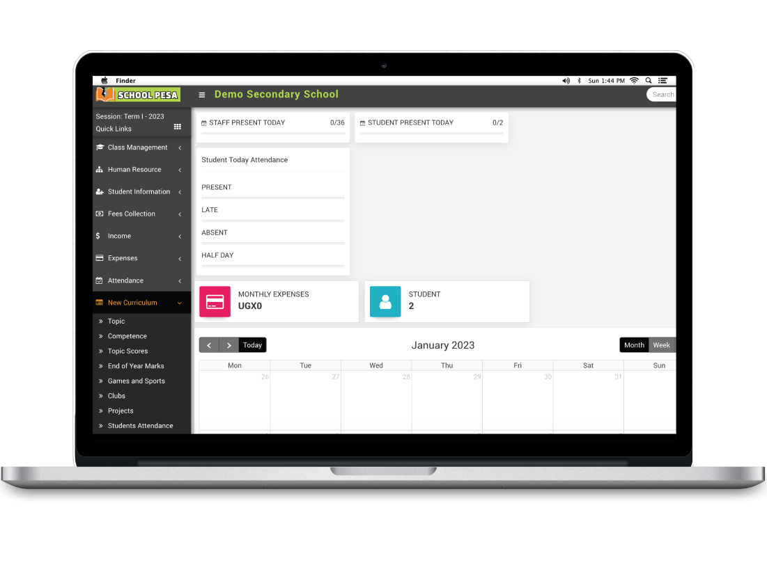 Record and Easily Monitor School Fees Collections, School Uniforms Fees, Transport/Bus Charges, and others. The system will enable you also record all expenses eg Monthly electricity bill, water bills, entertaiment costs and more others